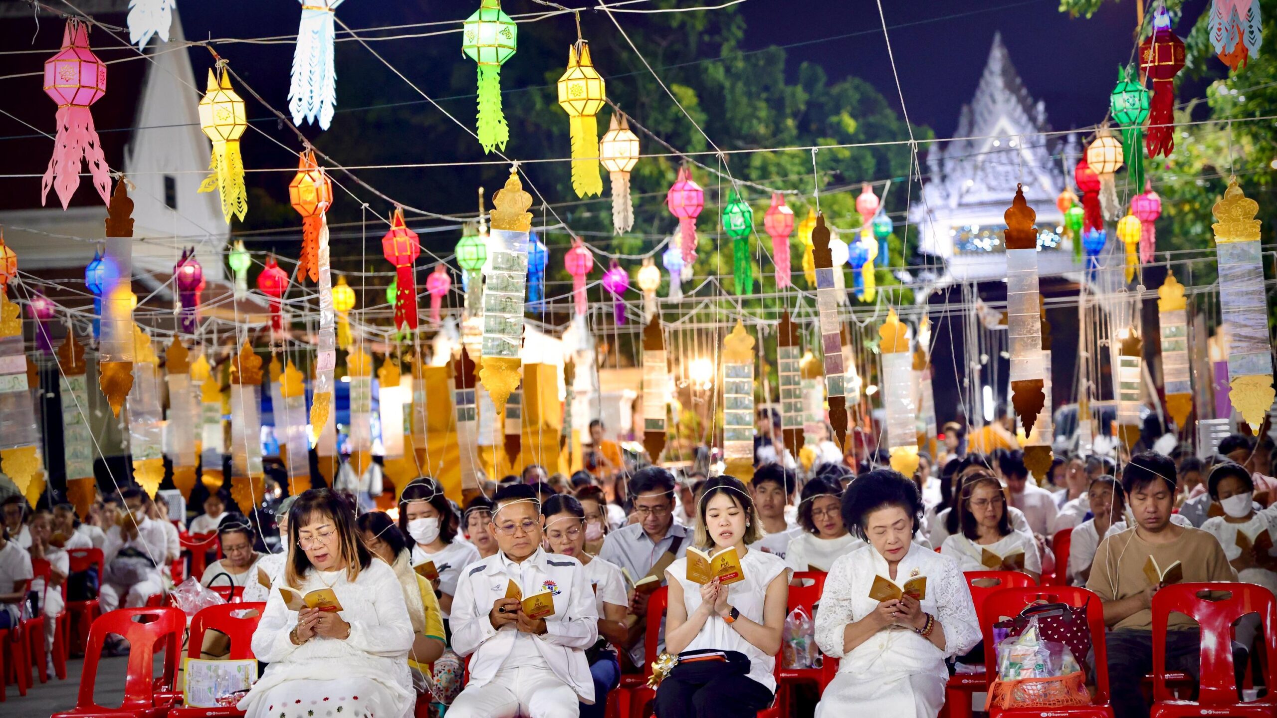 จากนั้น เวลา 21:30 น. พุทธศาสนิกชนร่วมกันเจริญพระพุทธมนต์และเจริญจิตภาวนาเพื่อความสงบสุขและความเป็นสิริมงคล และในเวลาเที่ยงคืน พระสงฆ์เจริญชัยมงคลคาถา รับปีใหม่ 2568 พร้อมกิจกรรมทอดผ้าป่าสิบสองราศีสำหรับ 12 ปีเกิด และตักบาตรถวายสังฆทานแด่พระเถระ
